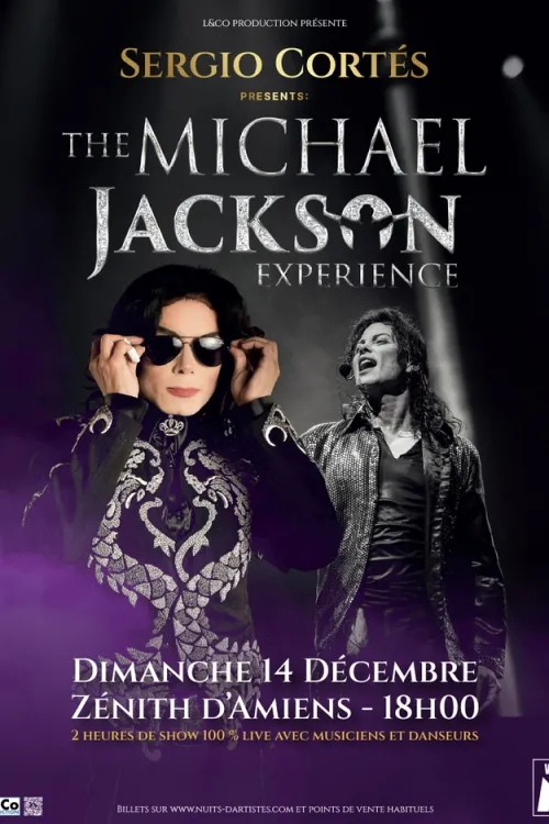 Redécouvrez tous les plus grands tubes de Michael Jackson interprétés par Sergio Cortés dans un show époustouflant de 2 heures, 100% LIVE, accompagné de 10 musiciens et danseurs sur scène.